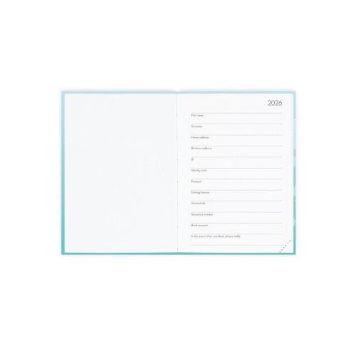 Altre Specifiche: Layout giornaliero 12 Mesi 2026, 368 pagine, chiusura con elastico, angoli perforati