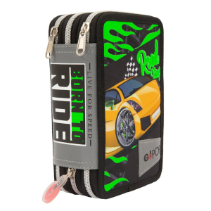 GoPop astuccio 3 zip completo con tutto l'occorrente per la scuola elementare. contenuto: 1 paio di forbici, 1 temperino, 1 righello, 1 gomma, 1 Matita, 1 Gomma, 1 penna sfera rossa tratto, 1 penna blu cancellabile Pilot Frixion, 18 pennarelli Giotto Turbocolor, 18 Matite Colorate Giotto Laccato.