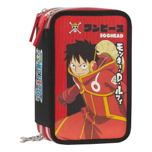 One Piece Astuccio Completo Rosso Nero Cappello Paglia | 3 Zip Scuola