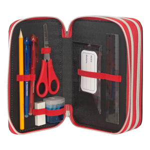 Parti all'arrembaggio dell'anno scolastico con l'Astuccio Completo 3 Zip ufficiale di One Piece! Decorato con l'energica fantasia Rosso e Nero e l'immagine di Cappello di Paglia, questo astuccio è un must per tutti i giovani fan dell'anime alle scuole elementari e medie. Non è solo bello, ma super organizzato: i tre ampi scomparti con chiusura a zip tengono tutto il materiale scolastico in perfetto ordine e sempre a portata di mano. Ed è già completo di tutto il necessario per disegnare, colorare e scrivere: 18 matite colorate, 18 pennarelli, penne cancellabili blu e rossa, matita, gomma, righello, squadra, temperino e forbici! Realizzato con materiali robusti e grafiche originali con licenza ufficiale, è pronto a resistere a un intero anno di avventure tra i banchi. Perfetto da coordinare con lo zaino della stessa linea per un set scolastico completo firmato One Piece!