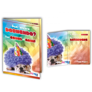La scritta continua: "Svegliatiii e corri a mettere un buon antirughe!". All'interno del biglietto c'è ampio spazio per scrivere un messaggio personalizzato al festeggiato.