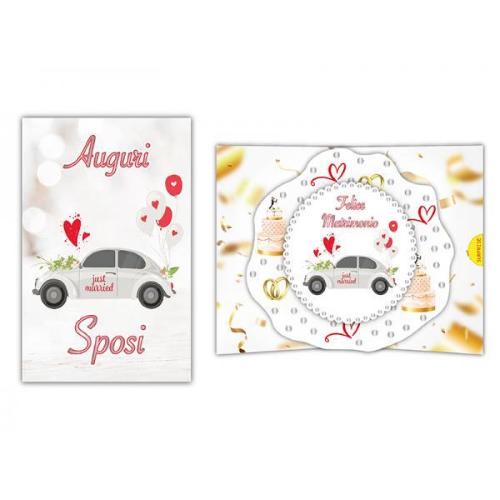 RF Biglietto Auguri Pop-Up Matrimonio | Romantica Auto 3D e Tasca Surprise