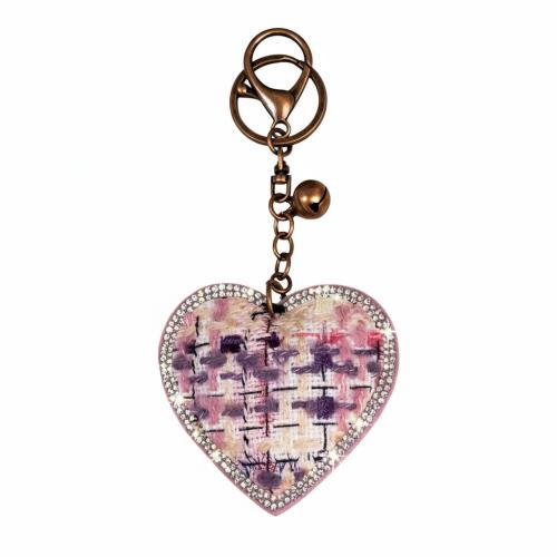 Kikamia Portachiavi Cuore Tweed Rosa | Charm da Borsa con Strass