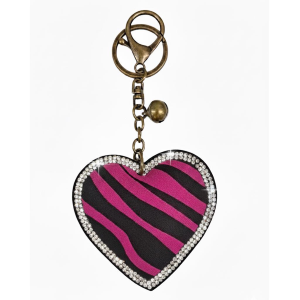 Kikamia Portachiavi Cuore Zebrato Rosa | Accessorio Moda con Strass