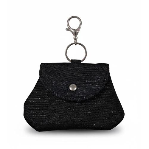 Kikamia Portamonete Charm Lurex Nero | Mini Pochette Scintillante da Agganciare