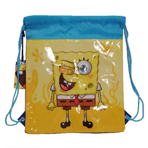 Spongebob Sacca realizzata in resistente tessuto foderto internamente, parte anteriore plastificata, chiusura con lacci.