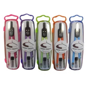 Nella confezione è incluso una mina di ricambio con portamine, la custodia è in plastica. Il prezzo si riferisce al singolo compasso se si ha preferenza di colore indicarlo compatibilmente con le disponibilità di magazzino verrà spedito.