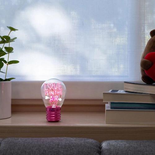 Tu sai che per creare la giusta magia basta un dettaglio unico, e questa Lampada Legami è perfetta per dichiarare i tuoi sentimenti senza dire una parola. Il design retrò a forma di lampadina nasconde un cuore tecnologico: un filamento interno che si illumina di un rosa vibrante con la scritta "Love is in the Air", trafitta da una freccia di Cupido.
