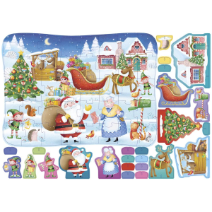 Il divertimento inizia assemblando il Maxi Puzzle da 40 pezzi (formato 32 x 58 cm), che raffigura il villaggio di Babbo Natale innevato, pieno di elfi e regali. Una volta completato, il puzzle si trasforma in un fantastico scenario di gioco! I bambini potranno animare la scena utilizzando le 12 tessere sagomate in 3D incluse (Babbo Natale, la slitta, le renne e gli elfi) che stanno in piedi grazie ai piedistalli, inventando storie sempre nuove. Per i momenti di relax, c'è il libro illustrato di 24 pagine: una dolce storia da leggere insieme e tanti disegni da colorare per scoprire i segreti del Polo Nord.