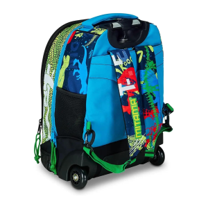- Design zaino: Tirannosauro Rex in tema di colori vivaci azzurro, verde e rosso, per un tocco di fantasia e originalità