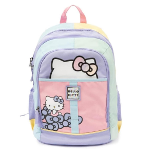 Porta la dolcezza di Hello Kitty sempre con te con questo adorabile zaino per la scuola e il tempo libero. Caratterizzato da un design colorblock con delicate tinte pastello, questo zaino per bambina è tanto bello quanto funzionale. I suoi tre ampi scomparti e la comoda tasca frontale offrono tutto lo spazio necessario per libri, quaderni e astuccio, mentre le tasche laterali sono perfette per la borraccia. Il comfort è assicurato dallo schienale in EVA e dagli spallacci ergonomici imbottiti. I dettagli, come il fiocco ricamato sulla stampa glitter e i tirazip personalizzati, rendono questo zaino Hello Kitty un accessorio unico per iniziare la scuola con stile.