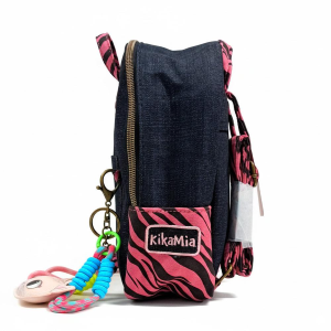 Kikamia Mini Zaino Leopardato e Denim | Portatutto con Charm Gatto Removibile