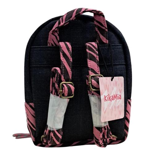Kikamia Mini Zaino in Denim e Animalier | Portatutto con Charm Gatto Removibile