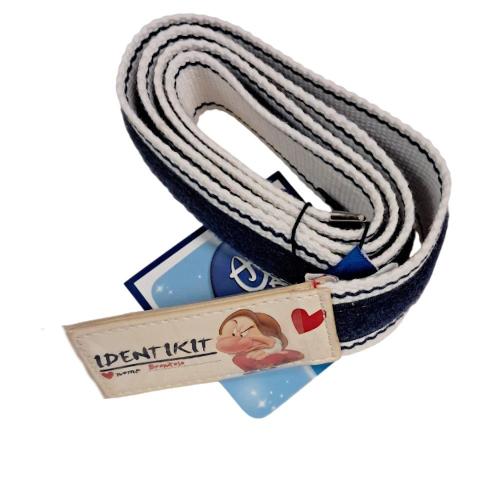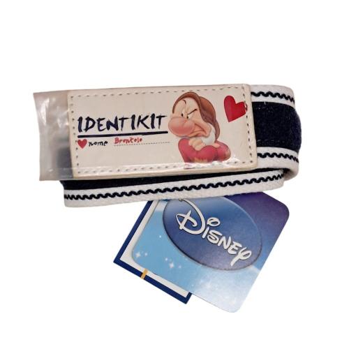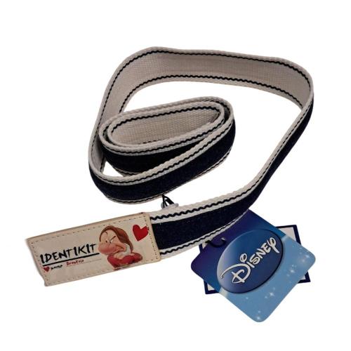 Realizzata in tessuto blu navy con dettagli bianchi sportivi, la cintura si distingue per la sua chiusura a velcro, una soluzione comoda e sicura che permette una regolazione perfetta della taglia (lunghezza totale 104 cm). La placchetta frontale "Identikit" mostra il simpatico Brontolo imbronciato e include la riga tratteggiata per inserire il nome, un dettaglio nostalgico che piacerà ai collezionisti e ai genitori. Un articolo autentico, conservato perfettamente dal 2011 ad oggi.